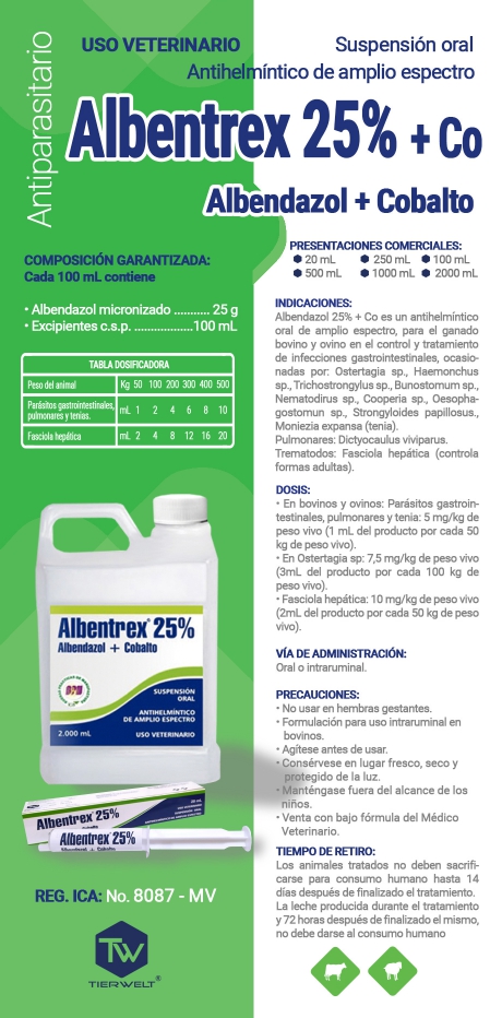 • Albendazol micronizado: 25g